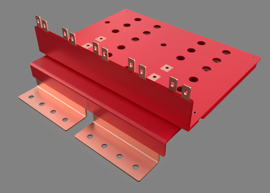 Bei laminierten Stromschienen handelt es sich im Grunde um eine mehrschichtige Sandwich-Struktur aus leitfähigen Schichten, die durch dünne, aber feste Isolationsmaterialien (Dielektrika) voneinander getrennt sind. Als Leitermaterial verwenden wir Kupfer- (CU-ETP), Aluminium- oder Cupal-Bleche.